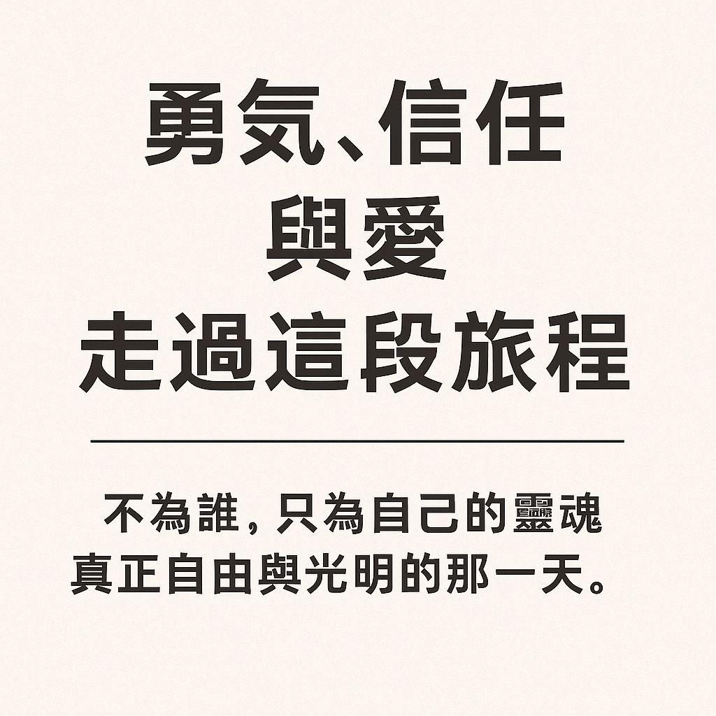 讓我們用勇氣、信任與愛,走過這段旅程。不為誰,只為自己的靈魂真正自由與光明的那一天。